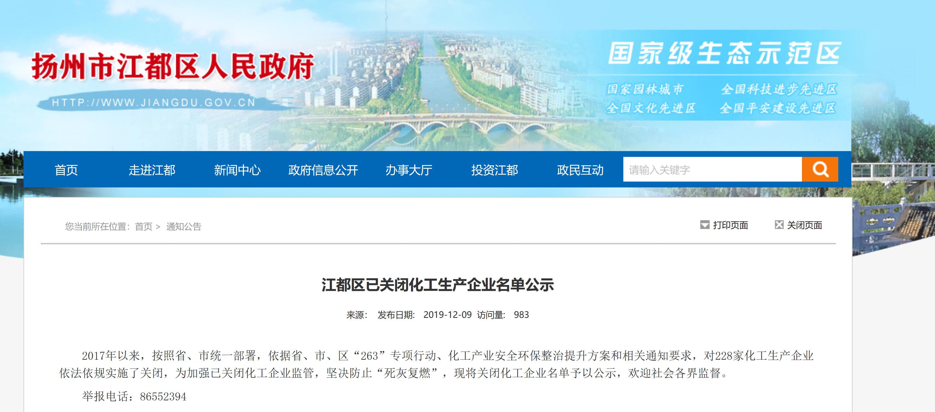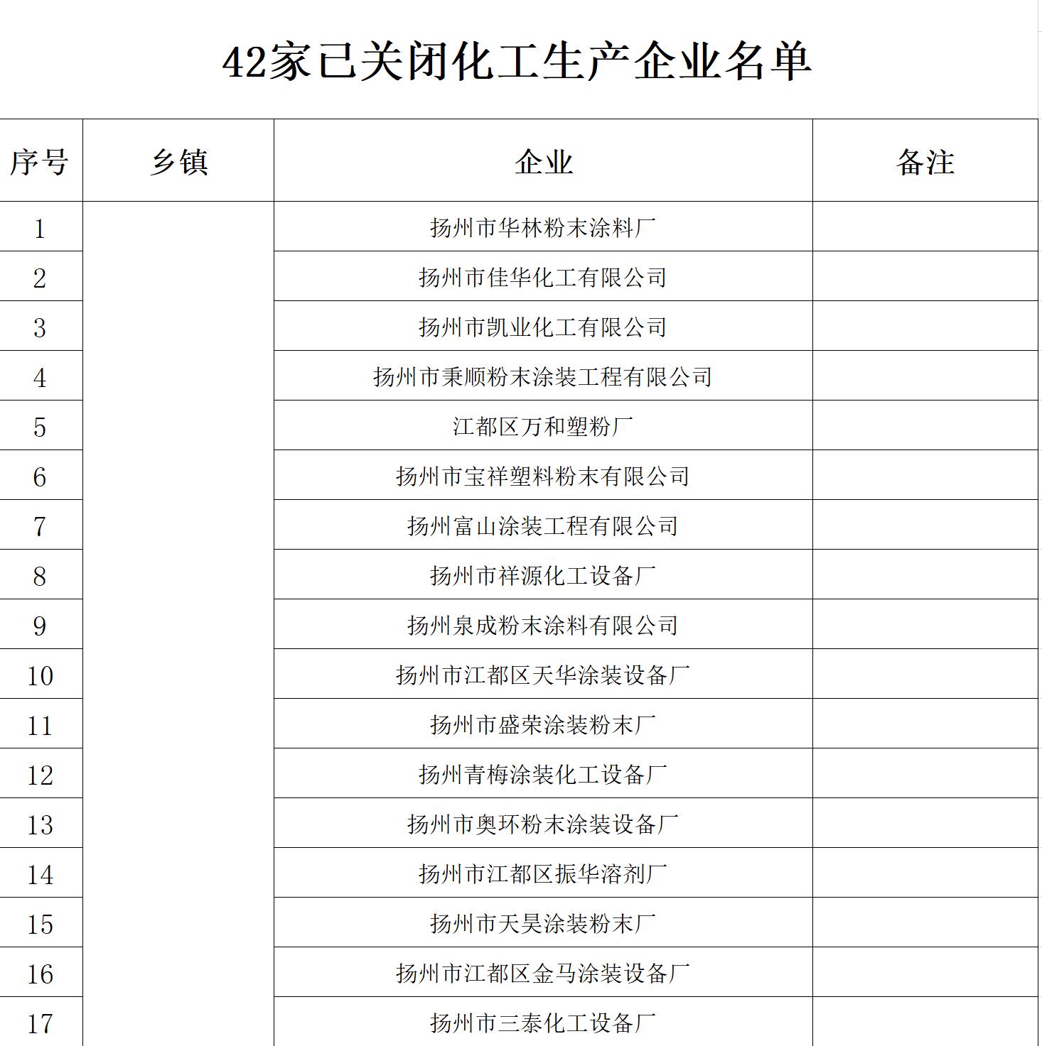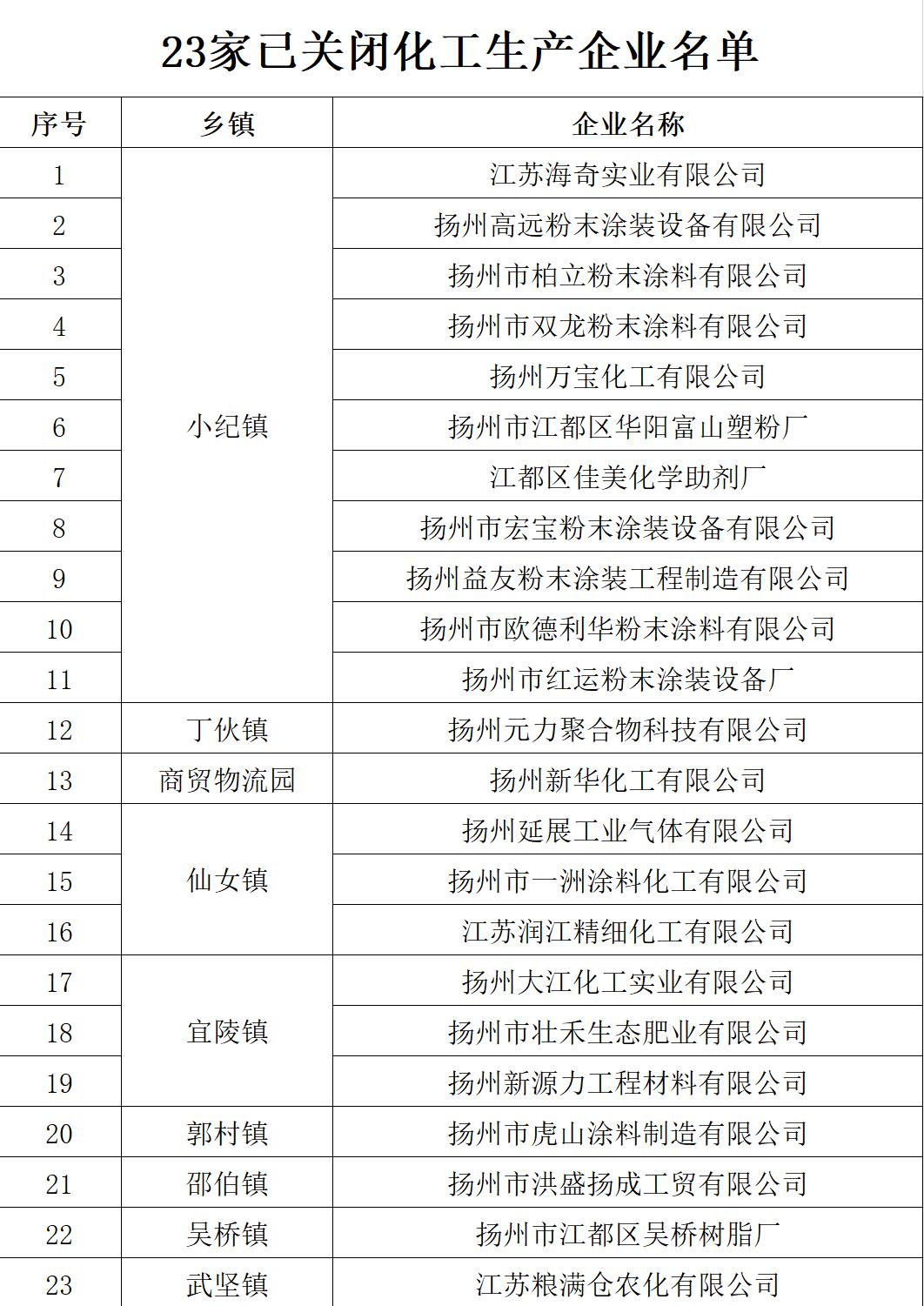 點擊下載查看:江都區(qū)已關閉288個化工生產(chǎn)企業(yè)名單