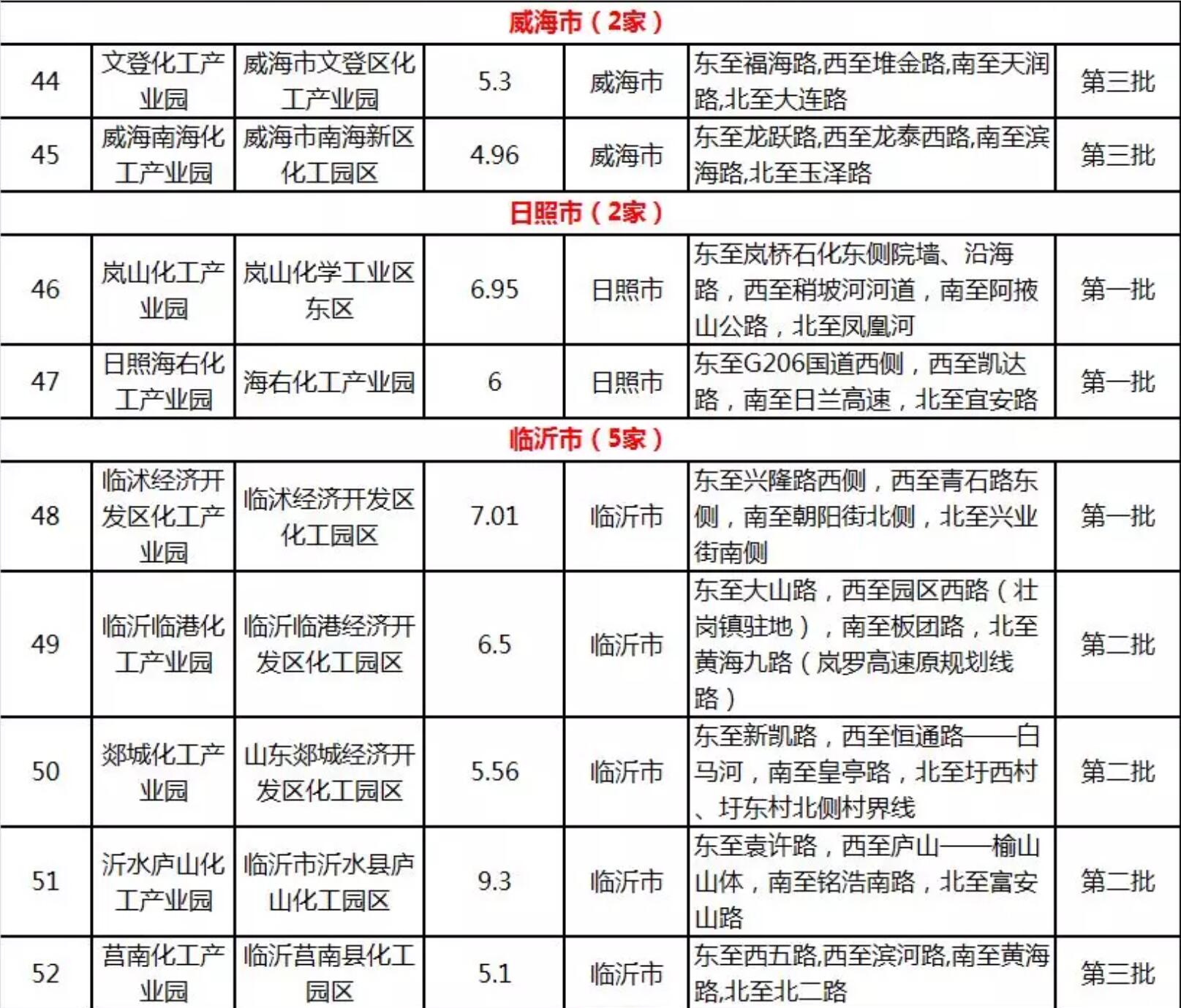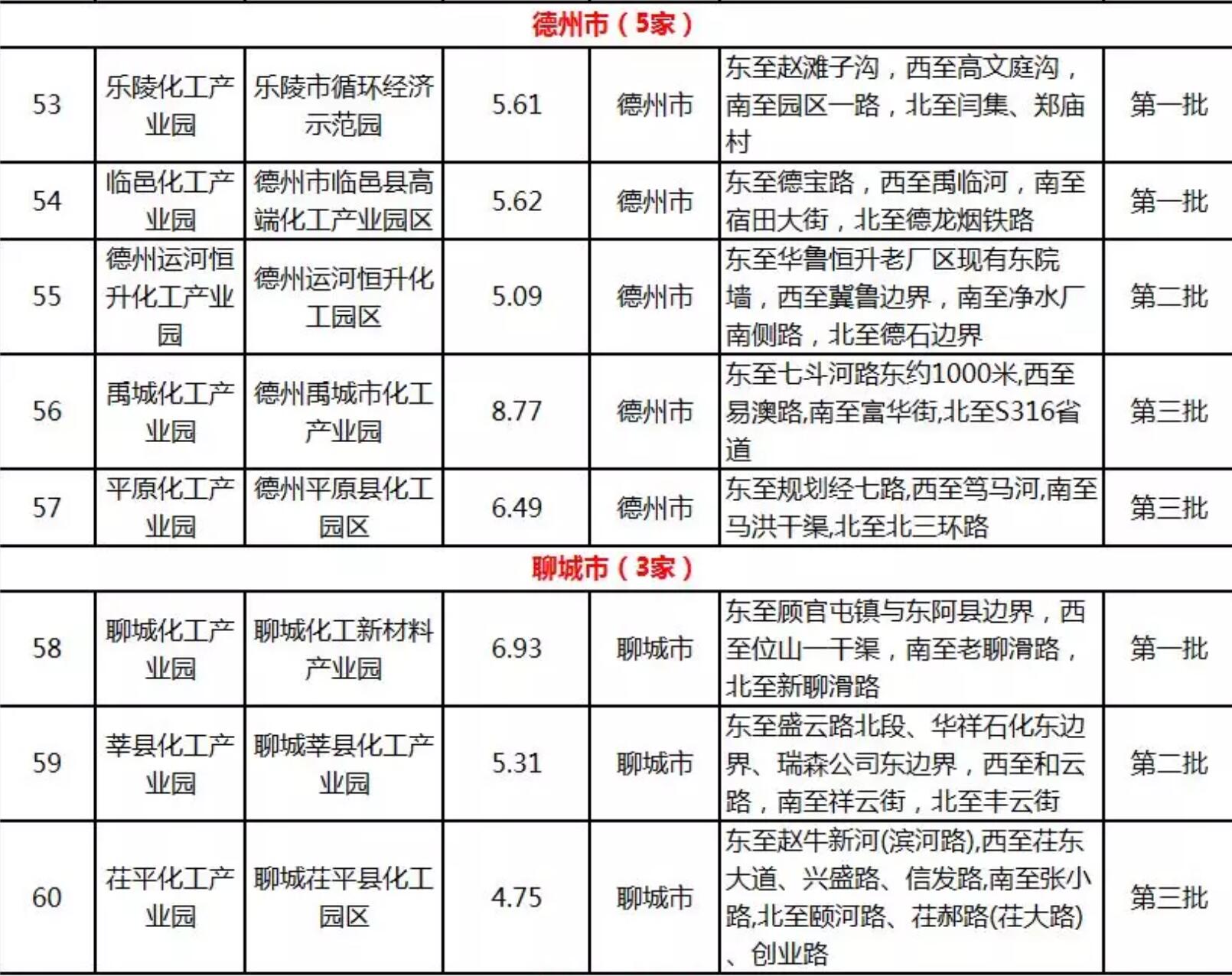 表三 山東省認(rèn)定專業(yè)化工園區(qū)名單匯總
