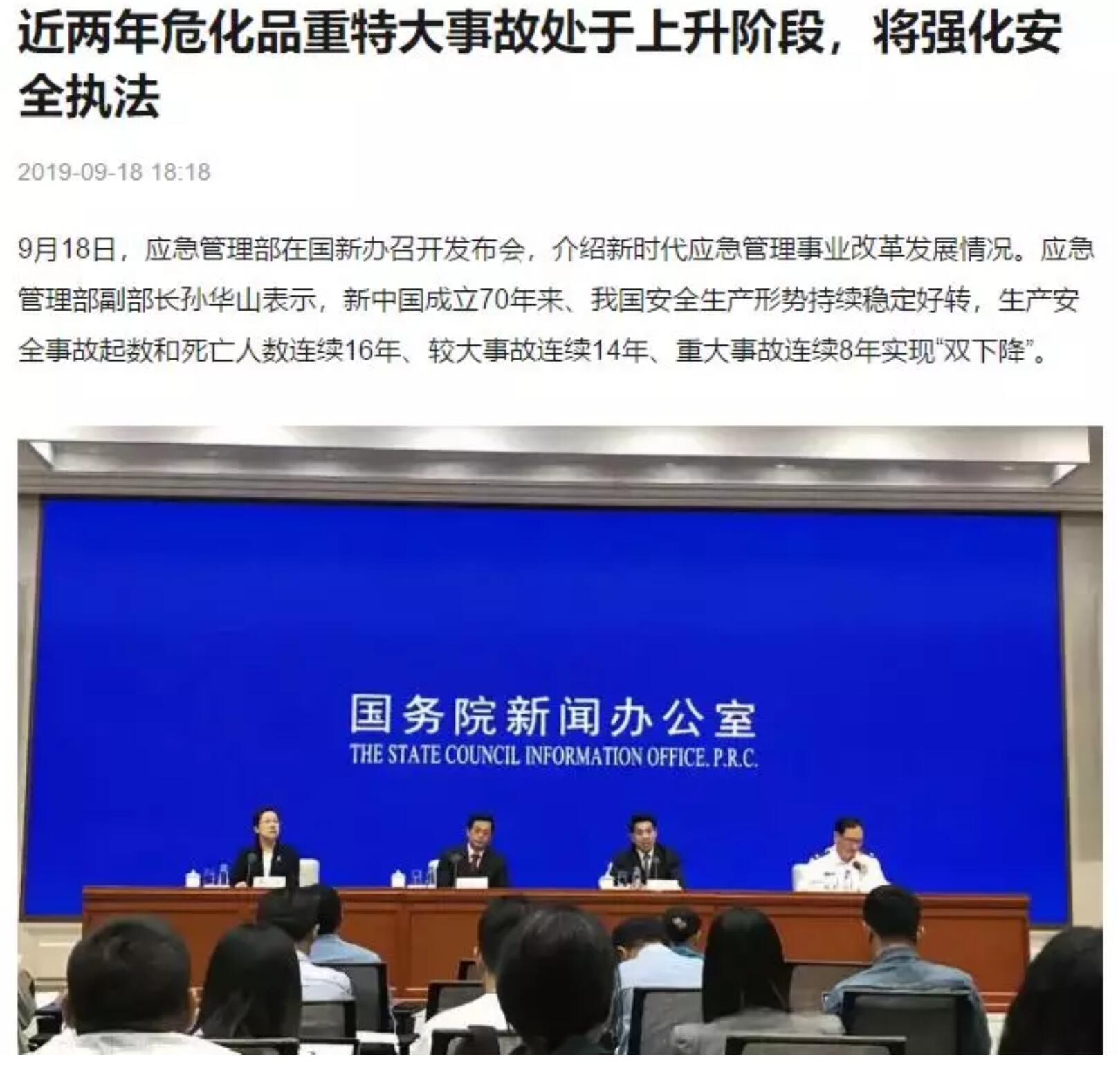 昨天(9月18日),應(yīng)急管理部在應(yīng)急管理事業(yè)改革發(fā)布會中表示,近年來?;返闹靥卮笫鹿侍幱谏仙A段,應(yīng)急管理部將會持續(xù)強(qiáng)化?;钒踩珜m棃?zhí)法行動,嚴(yán)厲打擊各位違法行為,跟蹤治理重大隱患。